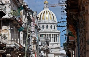 Fotografía que muestra balcones junto al Capitolio este jueves, en La Habana (Cuba). Cuba sufrió un apagón masivo a mediodía del miércoles tras la «salida imprevista» de la central termoeléctrica Antonio Guiteras (oeste), un fallo que acabó desconectando unos dos tercios del país y dejando sin corriente a unos seis millones de personas, incluida La Habana. (EFE/ ERNESTO MASTRASCUSA)