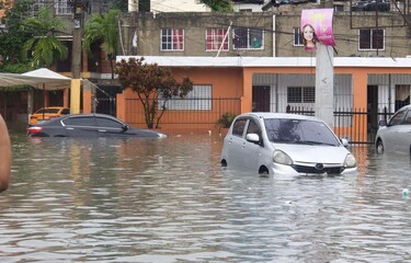 Vista de una calle inundada en el Ensanche Quisqueya del Distrito Nacional. (DIARIO LIBRE/ LUDUIS TAPIA)